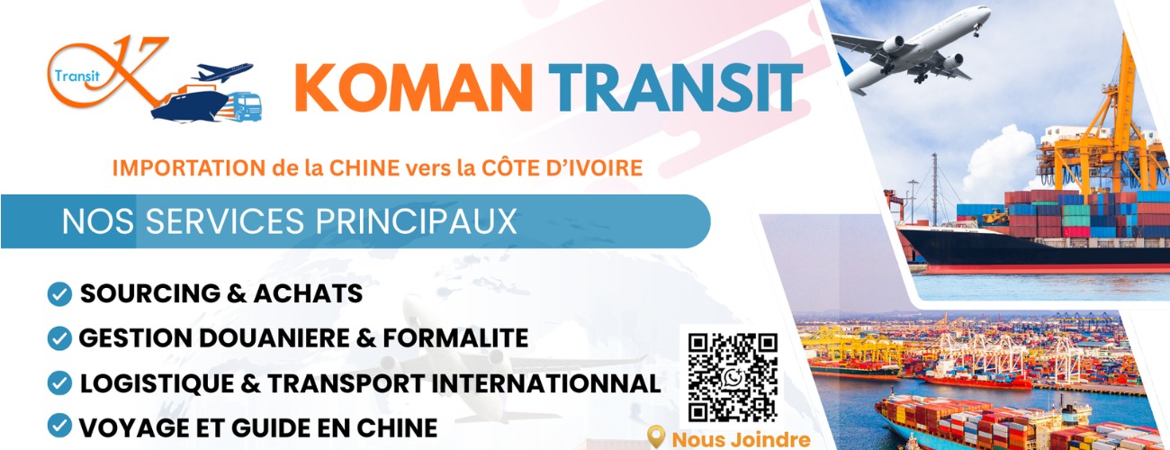 Basée en Cote d’ivoire et Chine, KOMAN TRANSIT Co est un transporteur international agréé en douane, spécialisé dans le fret maritime, aérien, express et la logistique e-commerce.